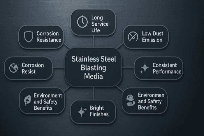 The advantages of stainless steel blasting media include long service life, corrosion resistance, low dust emission, consistent performance, bright finishes, environmental and safety benefits and lower total cost of ownership.